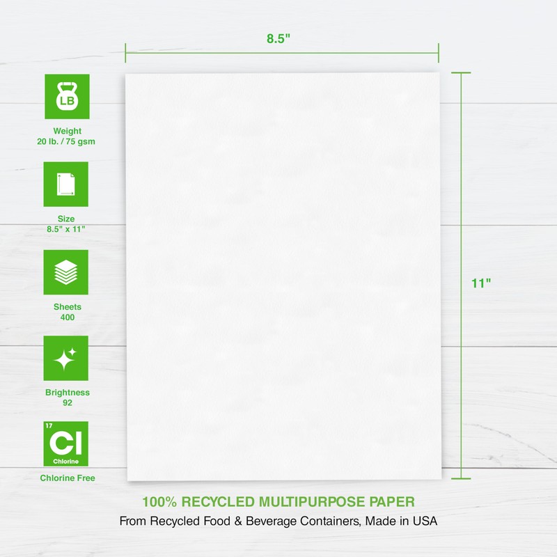 PrintWorks 100% Recycled Printer Paper 8.5" x 11" White - 20 lb Copy & Multipurpose Computer Paper - 1 Pack, 400 Sheets - Made in the USA - 92 Bright - Printer & Copier Compatible (00018)