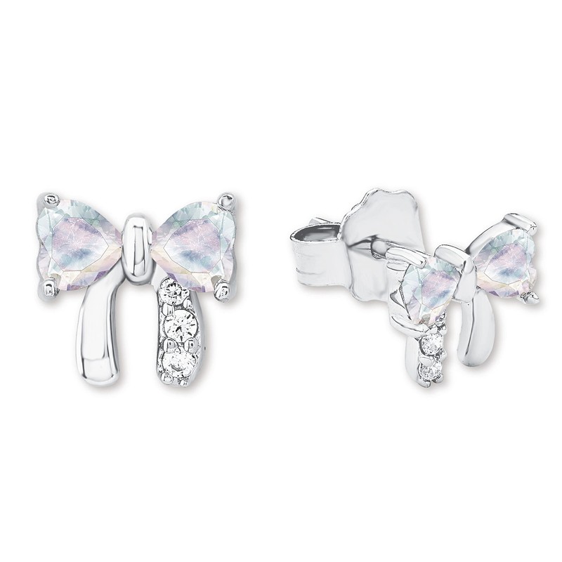 - Children's earrings with bow motif made of shiny 925 sterling silver and (synthetic) cubic zirconia