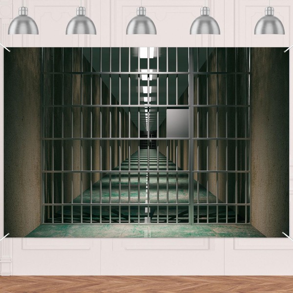 Prison Jail Bars Banner Backdrop Crime Police Mugshot Cell Theme Decor Decorations for Murder Mystery Party White Trash Party Birthday Events Supplies Kids Adults Funny Photo Booth Props Studio Kit