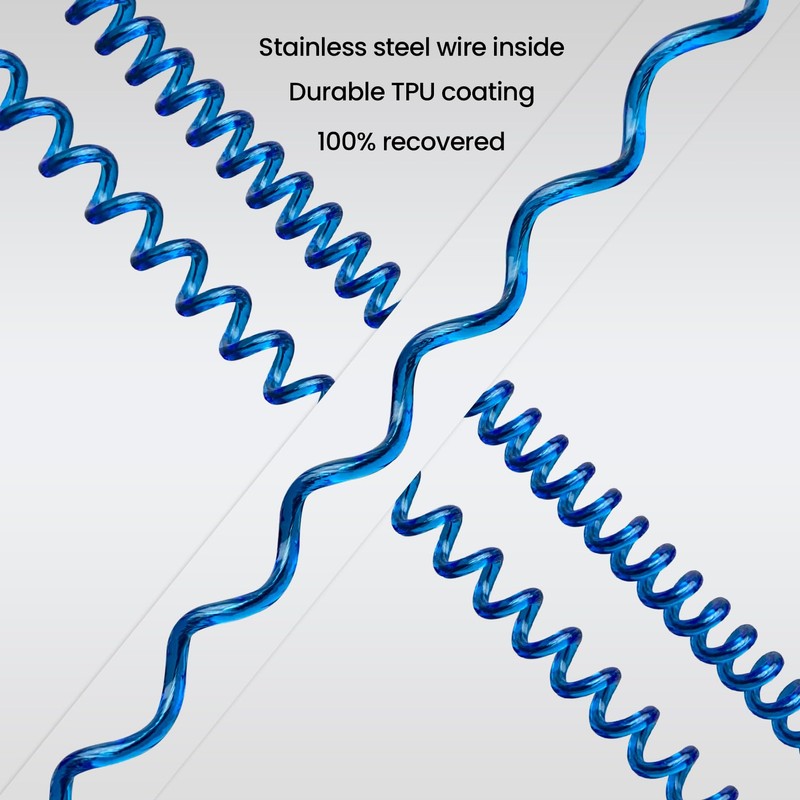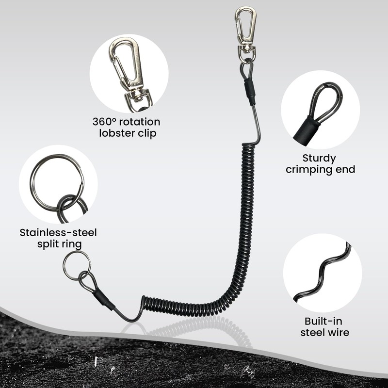 - Steel Wires with TPU Coating: The coiled lanyard features the high strength steel wire inside covered with durable TPU, so as to be strong enough to withstand heavy duty items and recover instantly after being stretched to its full extent