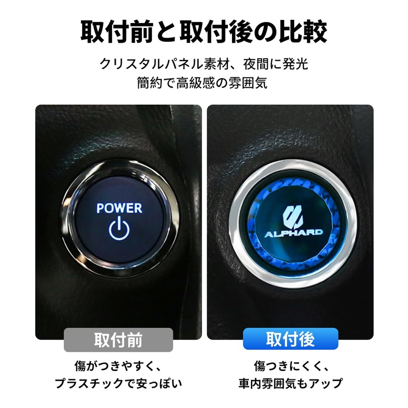 • Fashionable and luxurious: This engine start button cover uses light transmission panels and reflects the special logo on the side with a mirror design. Turn on the car at night and when the engine start button LED light will shine through the cover panel with the dedicated logo. The luminous logo design overflows the interior of the car and makes driving at night more fun. The start button cover has a simple design that makes it beautiful and discreet during the day