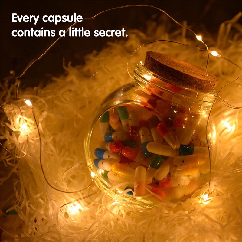 - What you get: cute and novel pill capsule design, each glass wishing bottle contains 101 capsule notes with hearts.