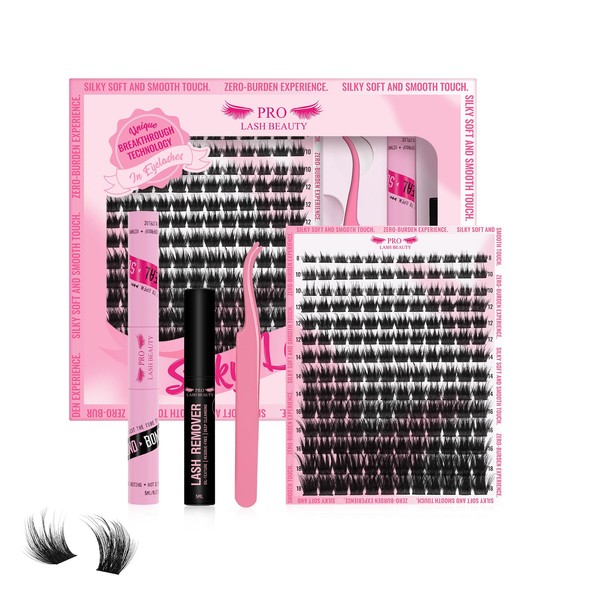 PRO 168 Pcs Eyelash Extension Kit Lash CIusters Kit Individual Lashes Soft Cluster Lashes with Lash Bond and Seal Lash Remover Lash Applicator Easy to Apply at Home(Fleecy,D-8-18mix Kit)