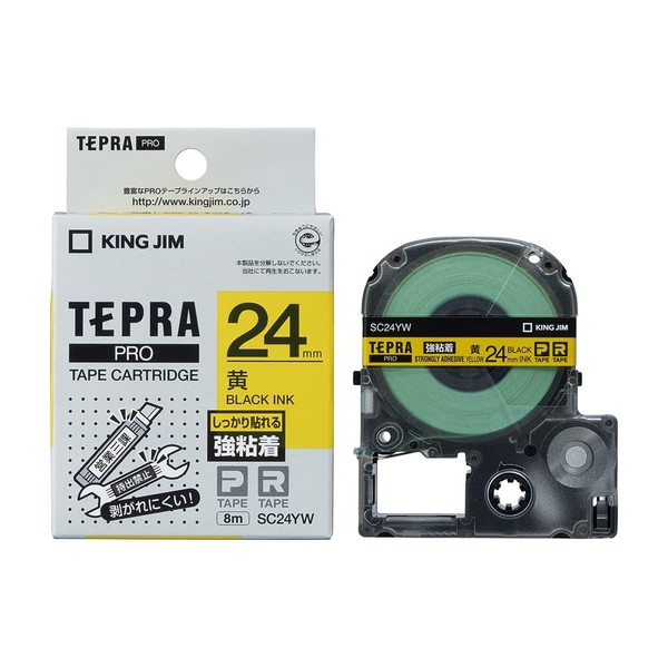 キングジム 【純正】 テプラPROテープカートリッジ 強粘着 24mm 黄ラベル/黒文字 長さ8m SC24YW