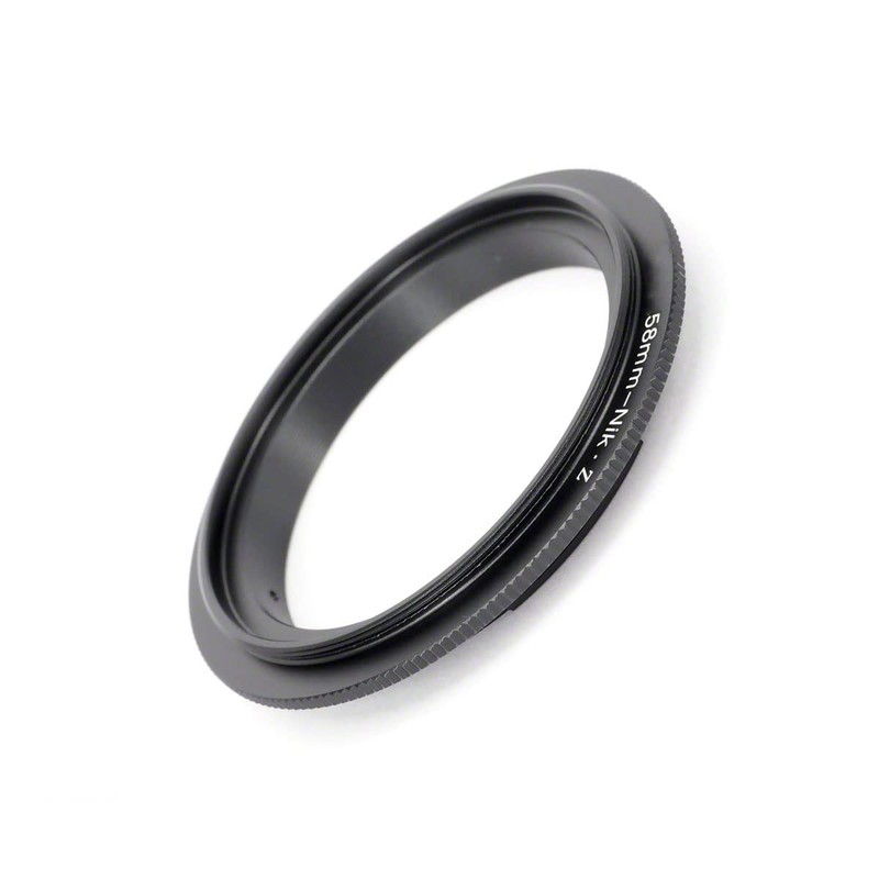 • This adapter allows you to attach any lens with a 58mm filter thread to any Nikon Z mount camera. The lens is attached in reverse which creates incredible macro focus capability.