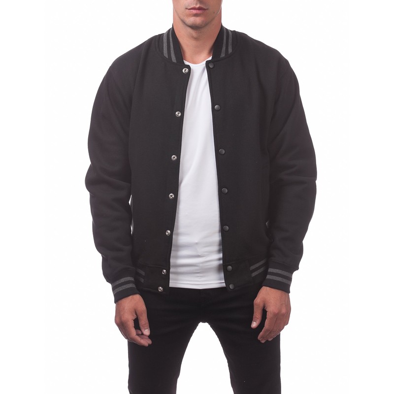 Pro Club Men's Varsity Fleece Baseball Jacket, Black/Black, X-Large