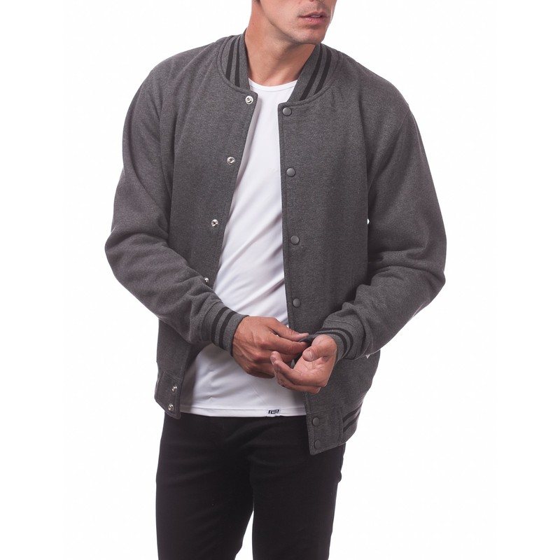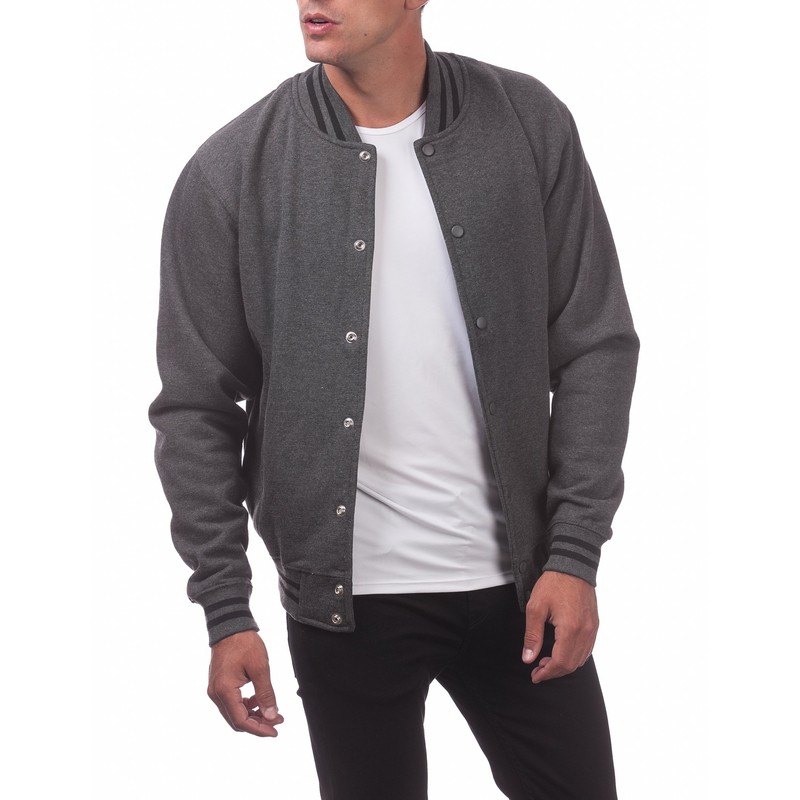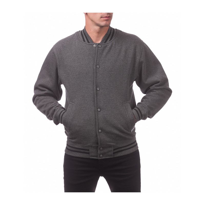 Pro Club Men's Varsity Fleece Baseball Jacket, Charcoal/Charcoal, Medium