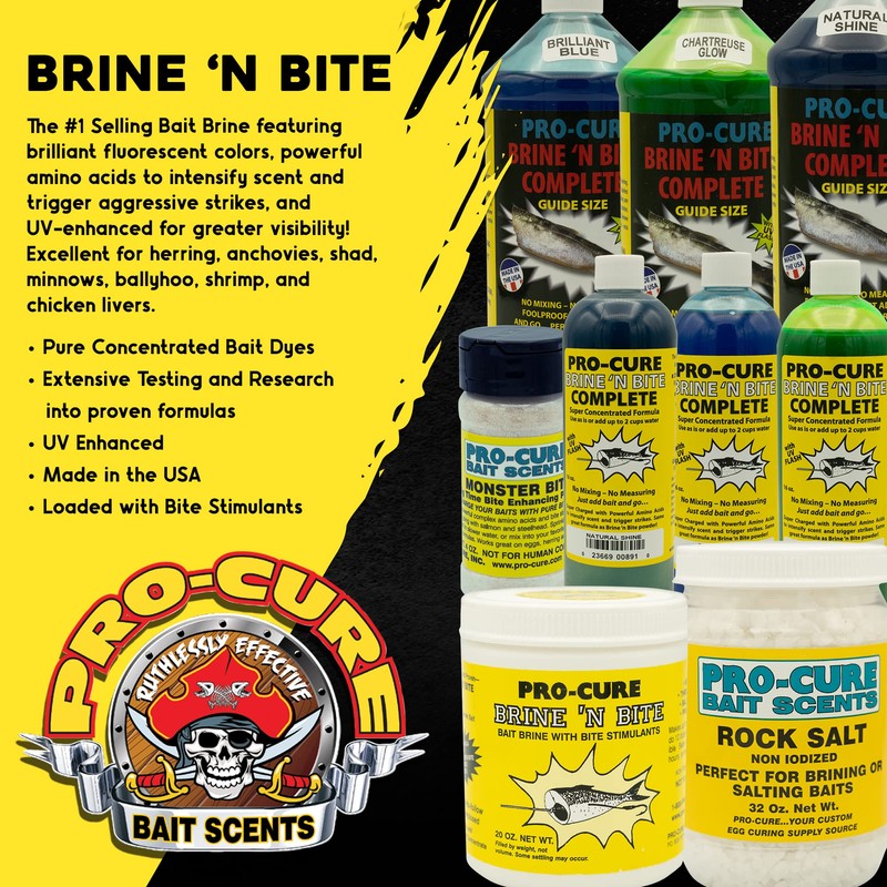 The same great formula as our legendary Brine 'n Bite Powder, without all the hassles of measuring. So if you're just doing a few trays of bait, grab a bottle or two of Brine 'n Bite Complete.