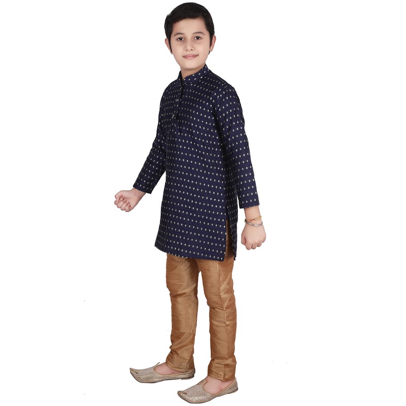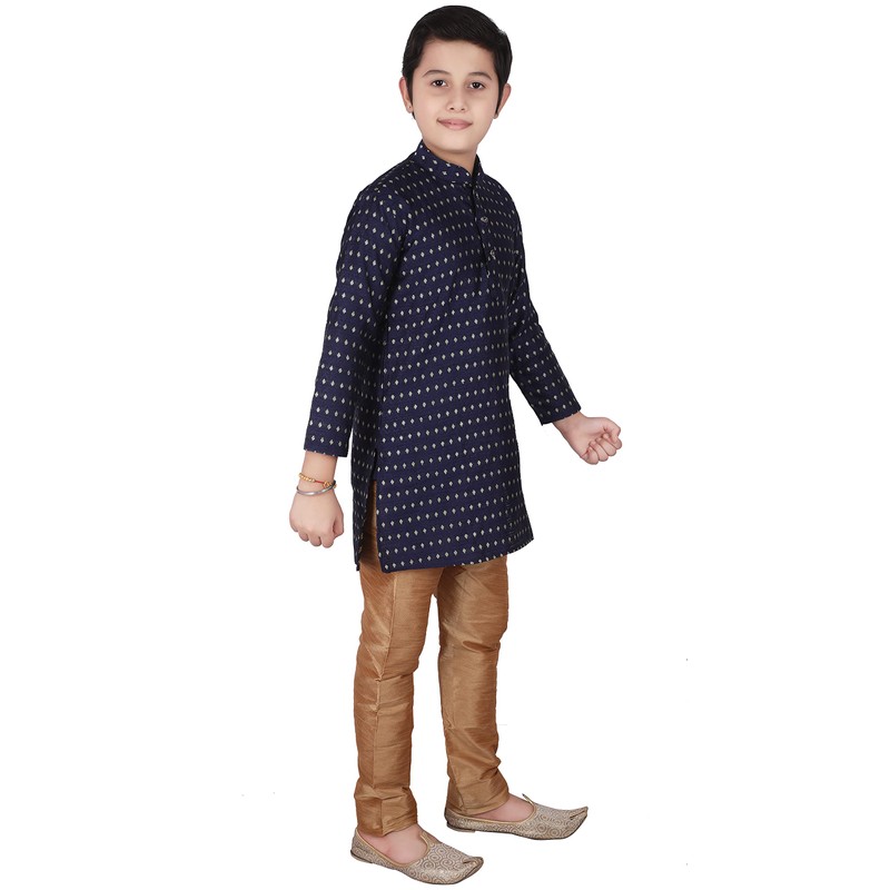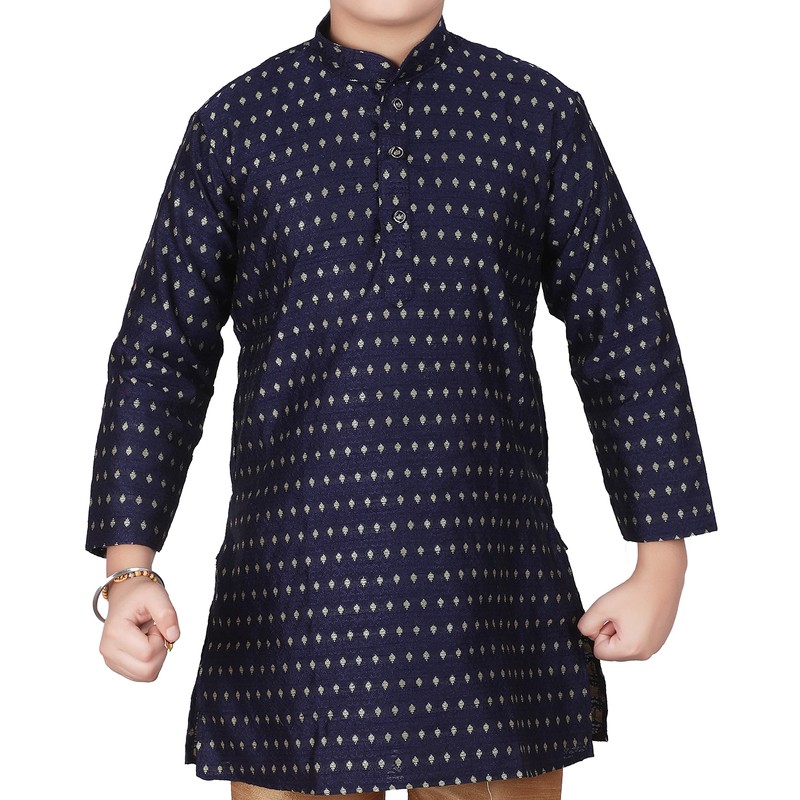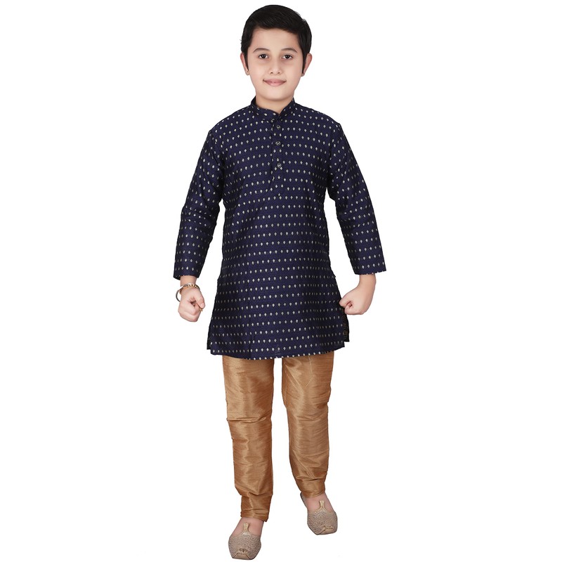 Pro-Ethic Style Developer Conjunto de kurta de seda jacquard para niños, ropa tradicional india, paquete de 1 (S-146), Azul oscuro, 1-2 Años