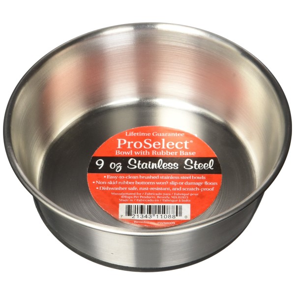 Pro Select Stainless Steel Dog Bowl with Rubber Base, 4-1/2-Inch, 9-Ounce
