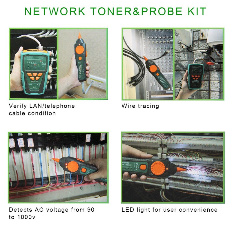 Pro'sKit MT-7028 Network/Coaxial Cables Toner Generator Probe Kit Cable Tester, Wire Tracing Up To 3 Kilometer
