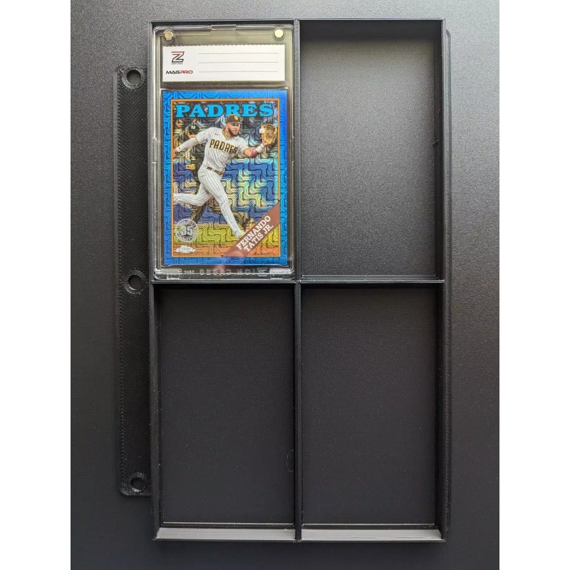 Pro Slab 3 ring binder page supporting Zion MAGPROgraded cards. Each listing is for 1 binder page that supports 4 card slabs. No plastic sheets or bags covering original Zion MAGPRO cases for absolute clarity. Fits any standard 3 "D" ring binder. Keeps Zion MAGPROslabs safe from rubbing and getting scratched. Easy to add and remove. Installation video for SGC https://youtu.be/GVH1IW1h3_8 MADE IN USA