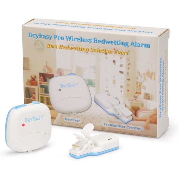DryEasy Pro Wireless Bedwetting Alarm with New Improved Sensor, 6 Selectable Sounds, Volume Control, Strong Vibration and Compact Design for Overcoming Bedwetting