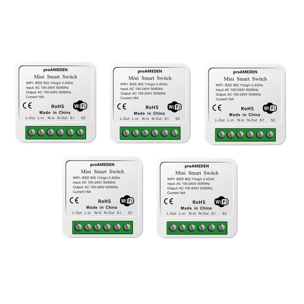 - proAMEDEN Mini-Smartschalter: Es ist ein intelligentes Schaltermodul mit breiter Anwendbarkeit, starker Funktion und kleiner Größe. Es unterstützt die Handy-App "Smart Life", die Fernbedienung "Tuya" und unterstützt auch die Sprachsteuerung von Google Home Alexa.