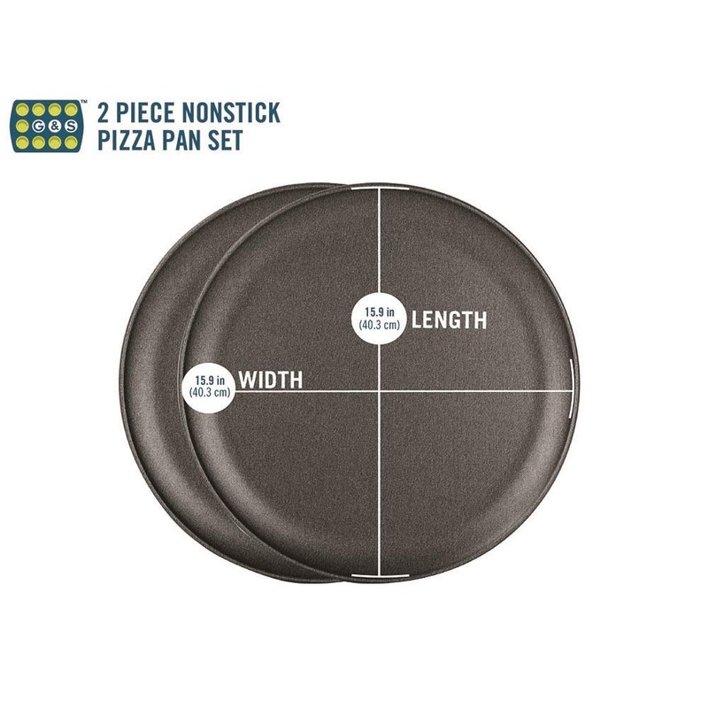Whether it's frozen, fresh or reheated from last night's dinner, create delicious and crispy pizzas with ProBake Set of Two Nonstick 16-inch Pizza Pans! Each pan is coated with a high performance Teflon Xtra nonstick finish that's designed to withstand everyday use. No need for cooking sprays or oils. The nonstick finish provides easy food release so even the cheesiest of pizzas won't stick. Pans are made with professional weight steel that heat evenly with no hot spots, giving you optimal baking results every time. ProBake Set of Two Nonstick 16-inch Pizza Pan is proudly made in the USA, made without PFOA, and is backed by a 10-year limited warranty. Pans are dishwasher safe, but hand wash and towel dry are recommended. Internal dimensions are 15.9-inch in diameter. External dimensions are 16-inch in diameter.
