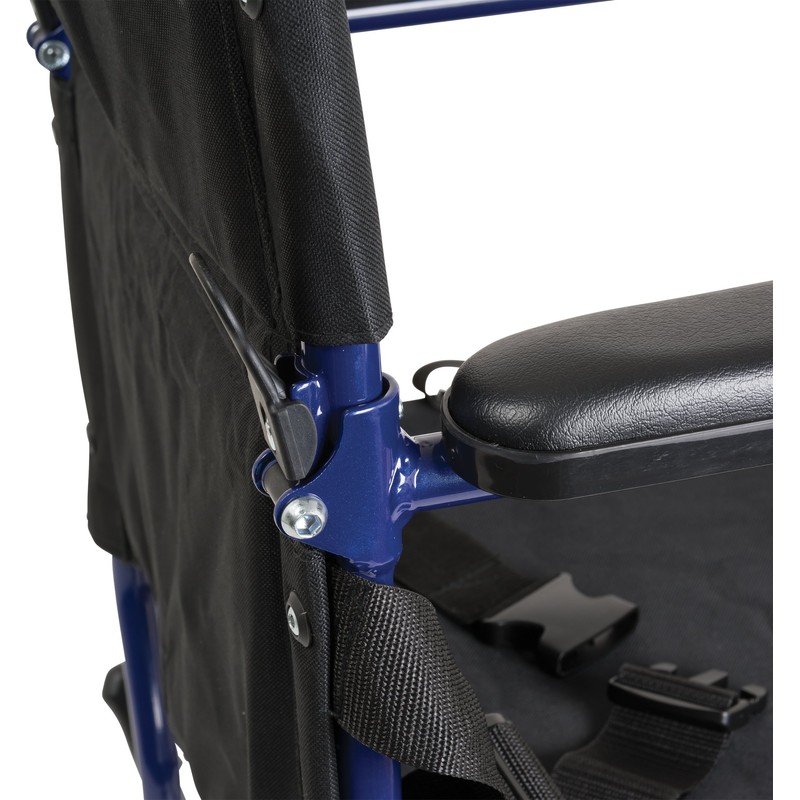 The ProBasics Aluminum Transport Chair is a compact, lightweight design with an easy-to-maintain finish. The flared handles and handy back-release hinge allow the back to fold down flat and compact for easy storage and transport. Comes complete with seat belt, tool-free swing-away composite footrests and heel loops. Supports patient weights up to 300 pounds.