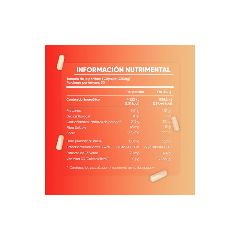 Probiotic Fit 30 Capsulas Avanzada Frmula de Probiticos y Prebiticos con Extracto de T Verde y Vitamina D3 Sin Levadura, Gluten, Soya Ideal para...