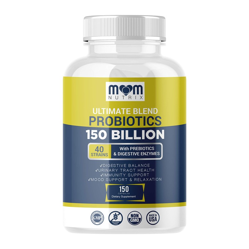 MOM NUTRIX probiotic pills are simply the best out there! With maximum potency, purity and shelf stable formula our probiotic blend ensures your healthy digestive system, immunity and overall well being. We use the highest quality organic ingredients for a time-perfect & lasting result. Try it today to experience the difference!UNIQUE FEATURES of MOM NUTRIX :40 Different strains and 150 billion CFUSurvives stomach acid and intestinal bileTargeted release technologyHighest potency, value packAlive potency promise till expiry dateIncludes prebiotics fiber & digestive enzymesMOM NUTRIX PROBIOTICS WILL HELP WITH :- Digestive balance- Urinary tract health- Colon support- Protected immunity- Mood support and relaxationMORE REASONS TO CHOOSE US :- Made in the USA- Non GMO- Gluten & soy free- GMP and ISO certified- 3rd Party lab tested- Factory priceSo get the results you always dream of! Surely you want the feel of a healthy life!
