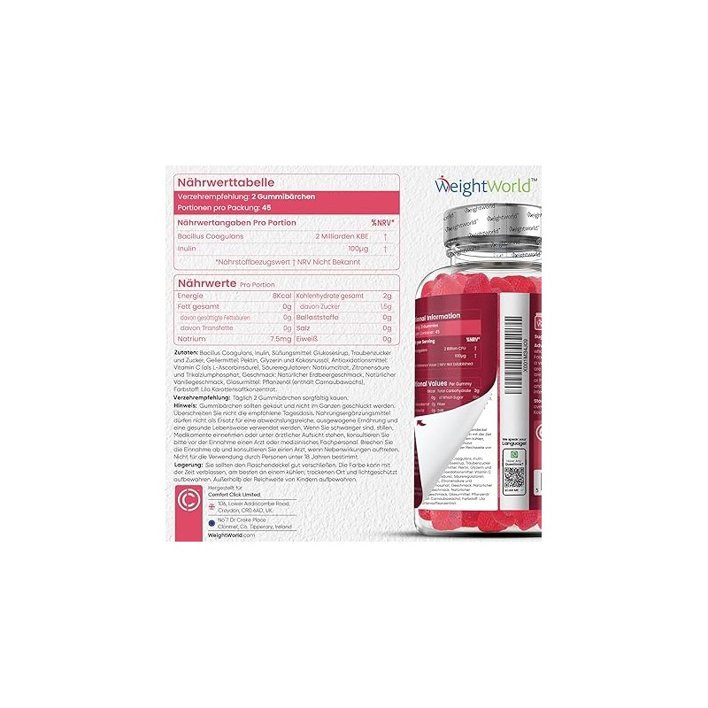 - Bacillus Coagulans & Inulin - Take 2 delicious strawberry and vanilla flavoured gummy bears for 45 days every day.