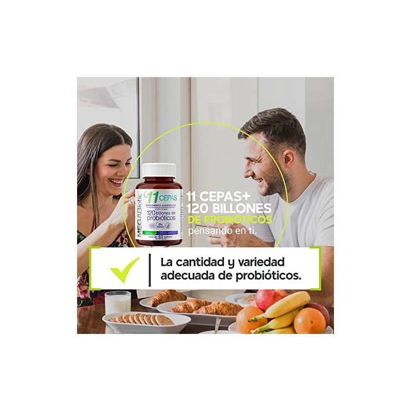 Acerca de este artículo Probioticos 120 Billones con 11 Cepas Activas: Cada cápsula contiene 120 billones de probioticos mujer de alta potencia, formulados con 11 cepas activas para apoyar la salud digestiva y fortalecer el sistema inmunológico en mujeres y hombres. Inulina de Agave para un Equilibrio Digestivo Óptimo: Enriquecido con inulina de agave, este suplemento ayuda a promover el crecimiento de bacterias beneficiosas en el intestino, potenciando la eficacia de los probióticos mujer y mejorando la digestión. Combinación de Probióticos y Prebióticos para un Bienestar Integral: Este suplemento ofrece una fórmula completa de probioticos y prebioticos, para apoyar la salud digestiva y mantener un equilibrio intestinal saludable. Fácil Integración en tu Rutina Diaria: Con 60 cápsulas en cada frasco, y una dosificación recomendada de 1 cápsula al día, este suplemento es ideal para mujeres y hombres que buscan mantener su salud digestiva con un solo paso diario. Este producto no es un medicamento. El consumo de este producto es responsabilidad de quien lo recomienda y de quien lo usa. No se utilice si es intolerante o sensible a los ingredientes de la fórmula. No se administre en menores de 18 años. Si es intolerante a la fórmula, suspenda su uso.