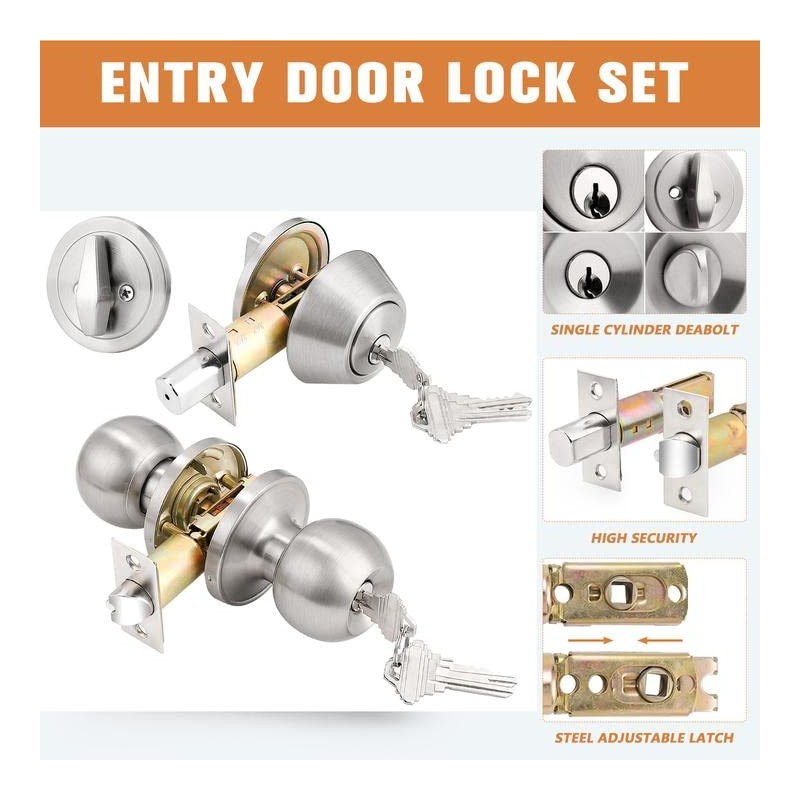 Probrico single cylinder keyed entry door knob sets can be locked and unlocked from the exterior with a key, and then locked or unlocked from the inside with an associated turn-button. While primarily used to secure entrances and side doors, it can be used anywhere a little extra security is desired.