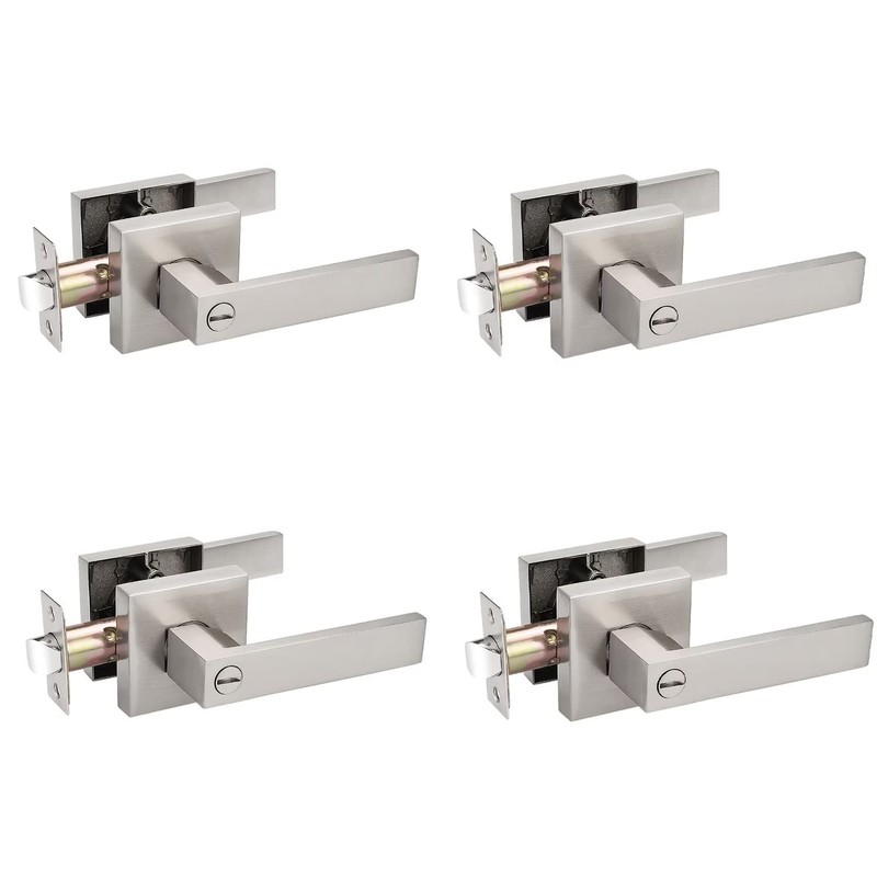 Probrico 4 Pack Square Door Lever Privacy Door Lock Handleset Keyless Lockset Door Knobs Storage Room Bathroom Set No Key in Satin Nickel
