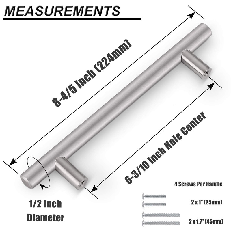 Probrico 5 Pack 6-3/10" Solid Stainless Steel Cabinet Pulls T Bar Modern Euro Style Brushed Nickel Kitchen Cupboard Handles Dresser Drawer Pulls Kitchen Cabinet Hardware 8-4/5" Length
