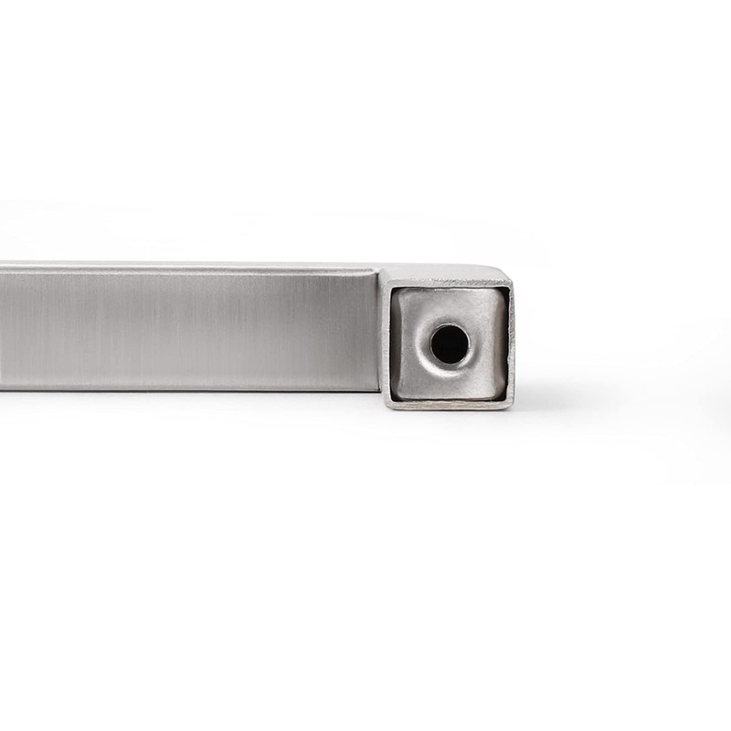 Add a touch of style with this modern square bar pull design that will give your room a bold sophisticated appeal. Constructed from steel for long lasting quality and durability. This style is ideal for both kitchens and bathrooms and includes hardware for easy installation.