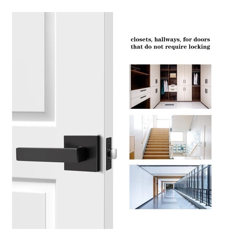 Probrico Probrico Matte Black Passage Door Levers Square Hall Closet Handles, Heavy Duty Interior Non-Locking Lever Sets, Reversible for Right & Left Side, 6 Pack