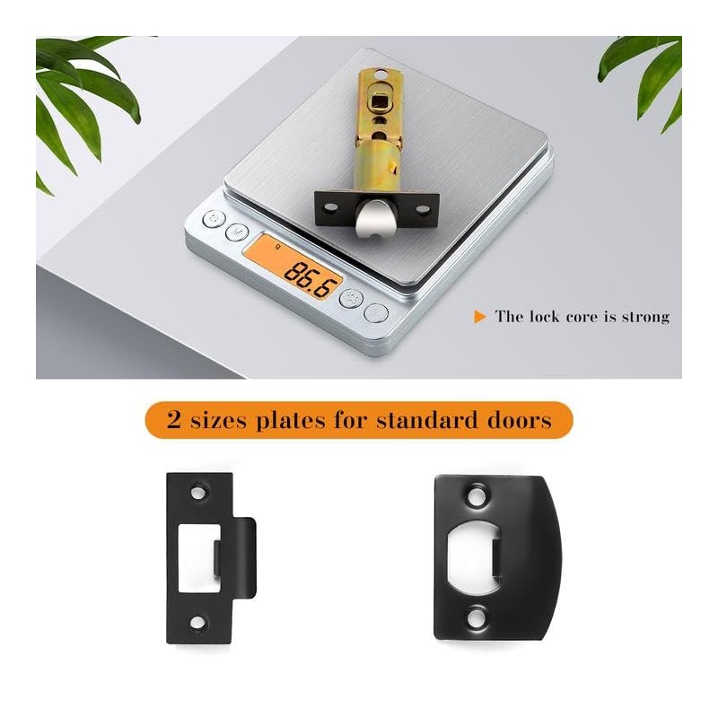 - Why Us: Heavy Duty & Durable; Material: Zinc Alloy; Finished Colour: Matte Black Finish; Strike Plates: 2 kind of plates for standard doors