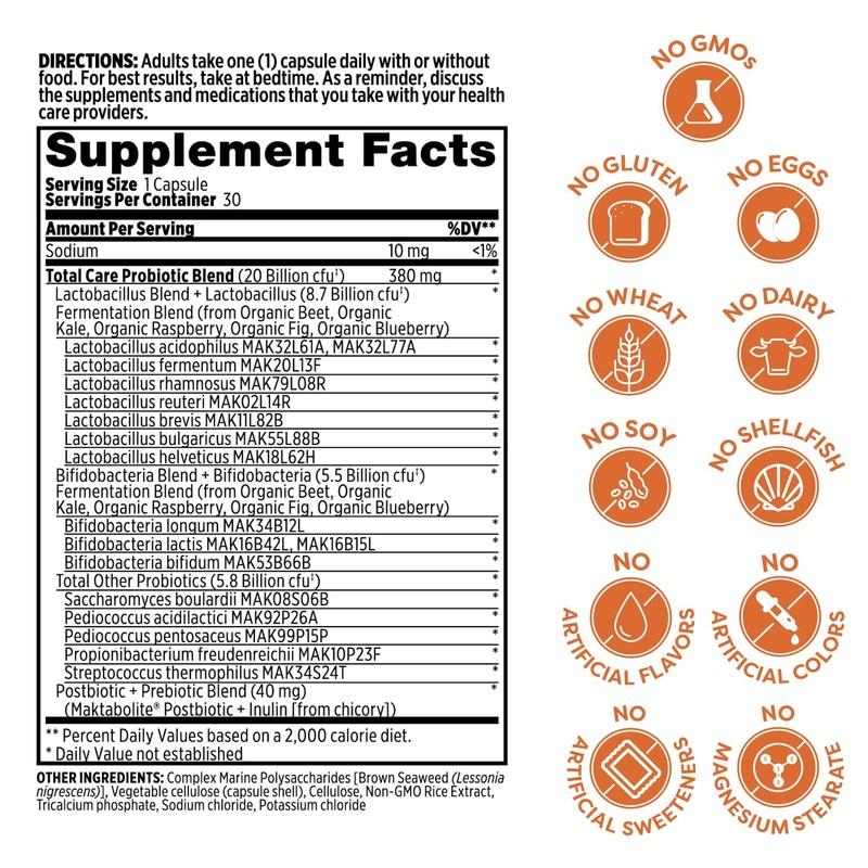 - Survives The Stomach: Each capsule features a naturally-derived seaweed extract that provides a secondary barrier against stomach acid and bile, prebiotic fiber and electrolytes keep probiotics nourished and hydrated for maximum survival