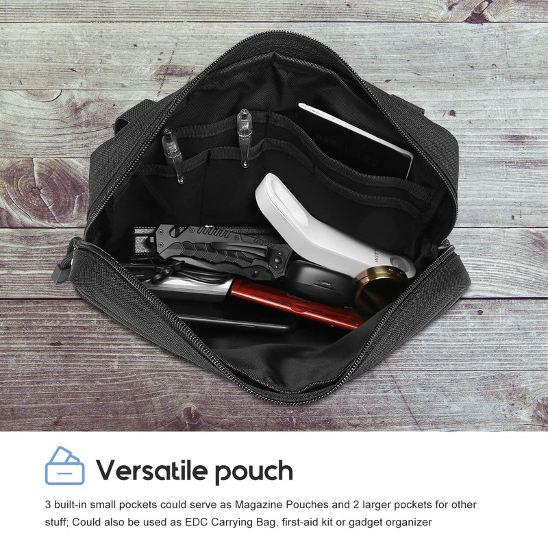 - Versatile Pouch: 3 built-in small pockets could serve as Magazine Pouches and 2 larger pockets for other stuff; Could also be used as EDC Carrying Bag, first-aid kit or gadget organizer