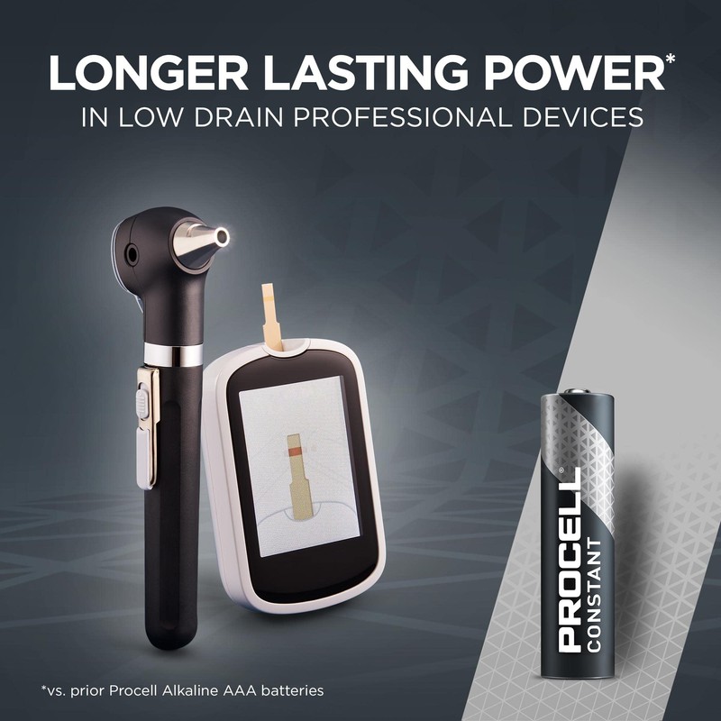 - LONG LASTING POWER – AAA 1.5-volt batteries deliver longer lasting power vs. prior Procell Alkaline AAA batteries; Procell Constant batteries are formulated for low drain devices like alarm panels, remote controls, thermometers, blood pressure monitors, pulse oximeters, 2-way radios, and more