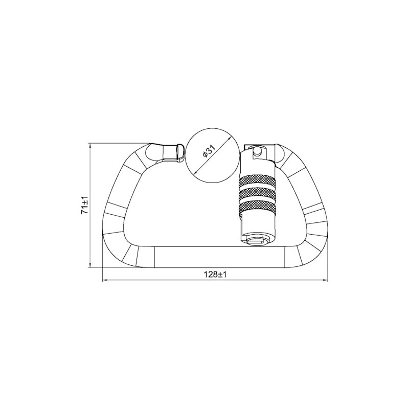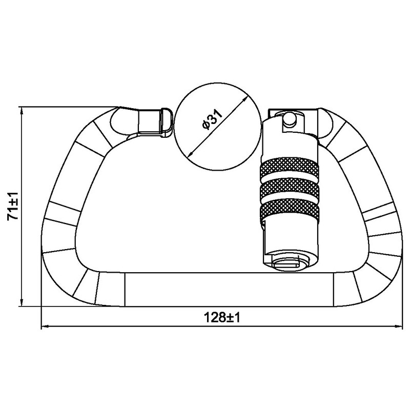 - ●MBS: 60kN ●Length: 128 mm ● Width: 71 mm ●Weight: 11.3 oz ●Gate Opening: 31 mm ●Gate Strength: 16kN (3,600 lbs)