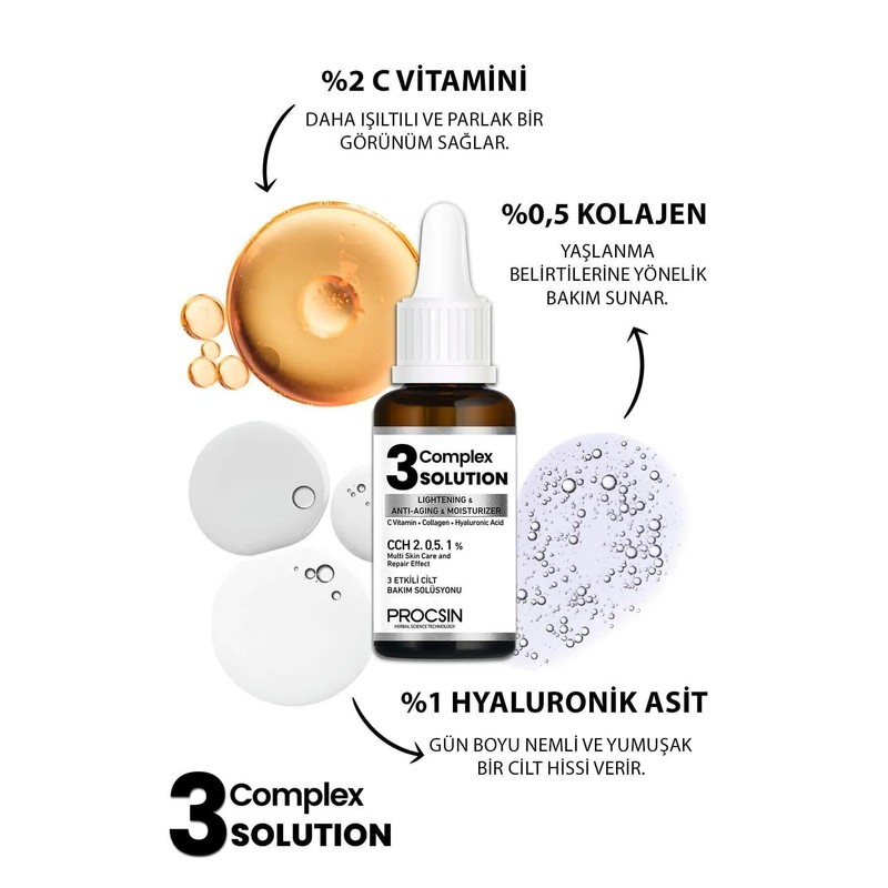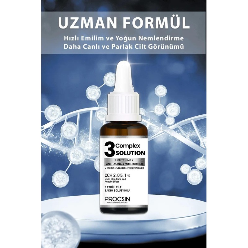 PROCSIN 3 Complex Solution Serum, Cilt Yenileyici & Leke Karşıtı, Gözenek Sıkılaştırıcı & Nemlendirici, Aydınlatıcı & Onarıcı Bakım, 20 ML