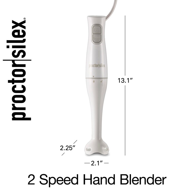 Proctor Silex Electric Immersion Blender with Detachable Dishwasher Safe Handheld Hand Blender Stick, 2-Speeds, 150 Watts, White (59739)