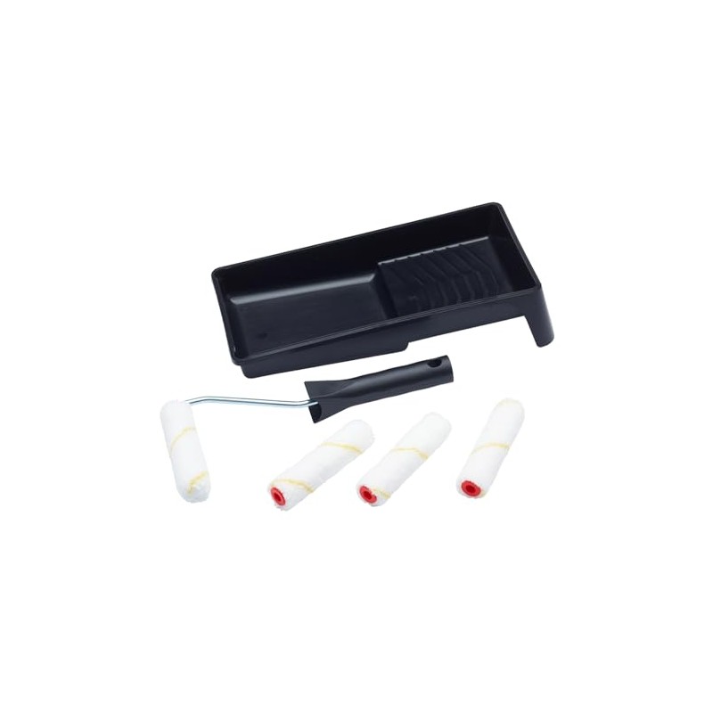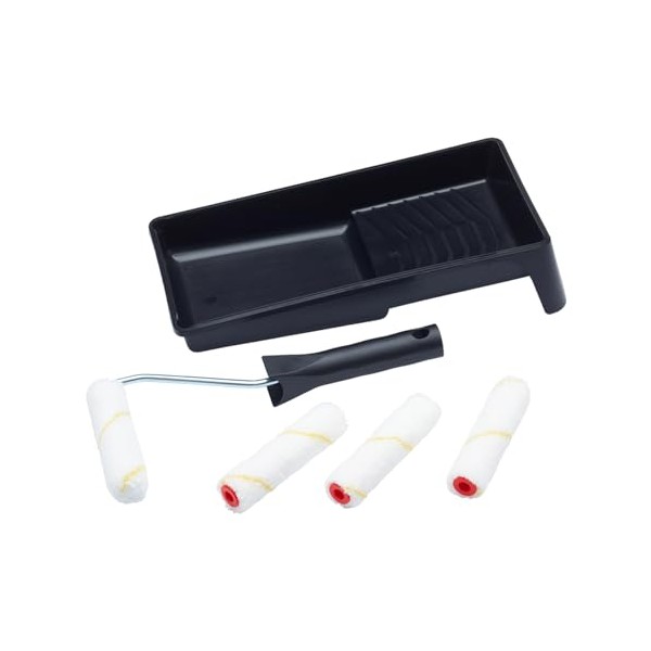 ProDec Advance 6 Piece Short Pile 4" Microfibre Woven Mini Paint Roller, Frame and Tray Set for Emulsion Paints and Woodstains