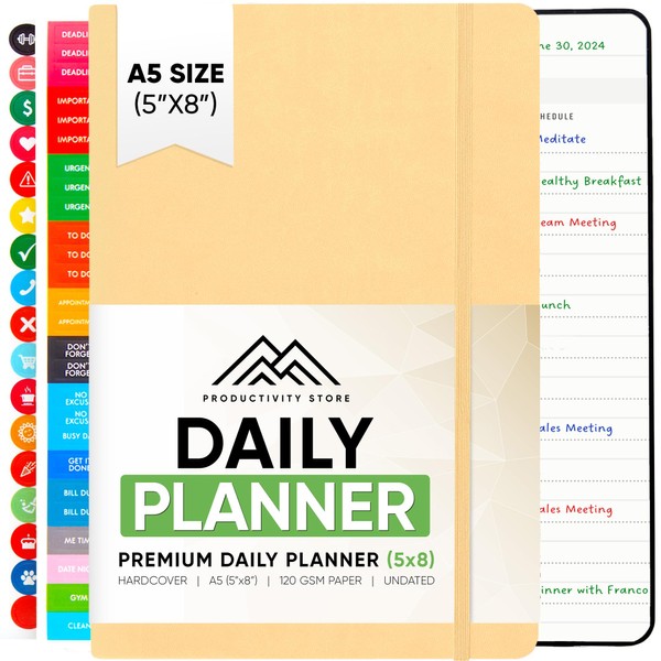 Productivity Store Daily 2024 Planner - Daily Planner 2024-2025 & Agenda Book with Daily Tasks & Schedule - A5 5.3" x 8.3" - 6 Month Undated - Cream