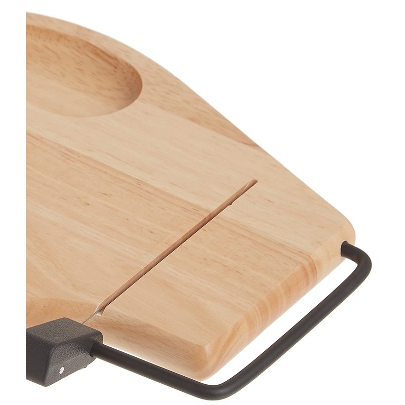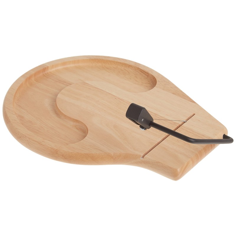 Prodyne's attractive cheese slicer and server tray features a handy recessed well for serving crackers or fruit along with sliced cheese. The high-tension stainless-steel cutting wire cuts through semisoft cheeses without sticking and harder cheeses without breaking. A natural finish on the beechwood board gives the server a sophisticated look appropriate for any occasion. The cutting wire is warranted by the manufacturer and can be replaced by mail. Washing with a mild detergent is recommended to keep the tray in good shape over time. _\--Julija Gelazis_