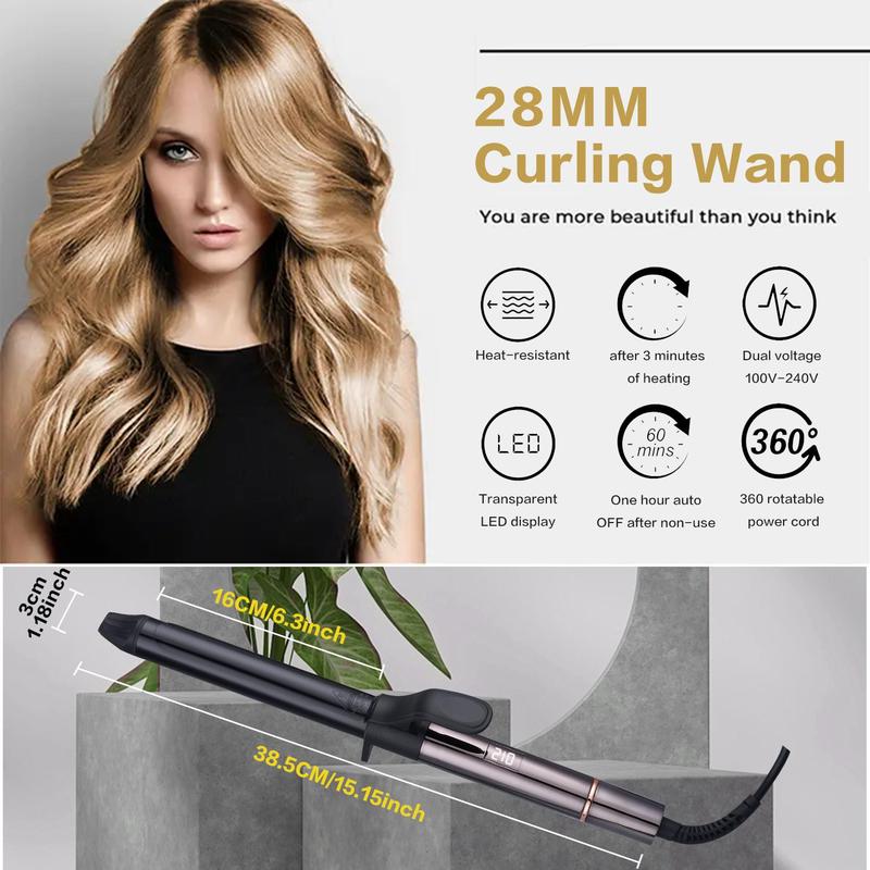 Professional 28mm Ceramic Curling Hair Iron, 1 Box Adjustable Temperature Hair Curler, Hair Styling Tool for Women & Girls