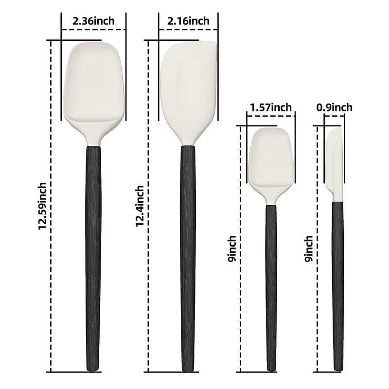 - ✅ 【4 Sizes for Every Kitchen Task】 Includes 12" (wide head for mixing),12" (wide head for mixing), 9" (angled edge for bowls), and 9" (mini for jars). Stackable design saves drawer space.