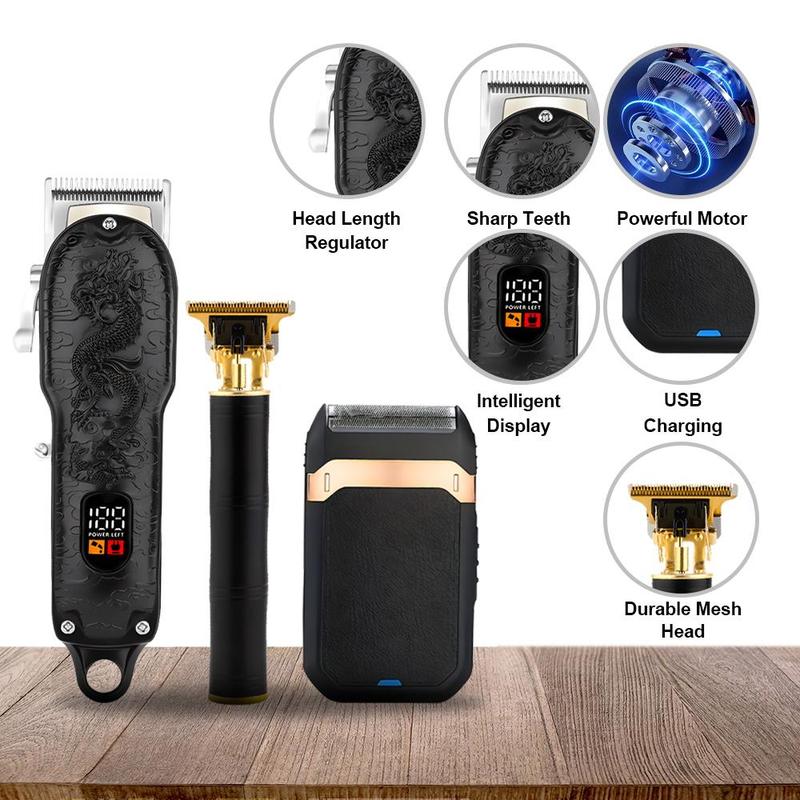 Professional Barber Clipper Set, Cordless Hair Trimmer for Men, Rechargeable Men's Hair Cutting Kit, Digital Beard Trimmers & Nose Hair Trimmer Set, Barber Kit, New Year Gift, Christmas Gift, Stocking Fillers