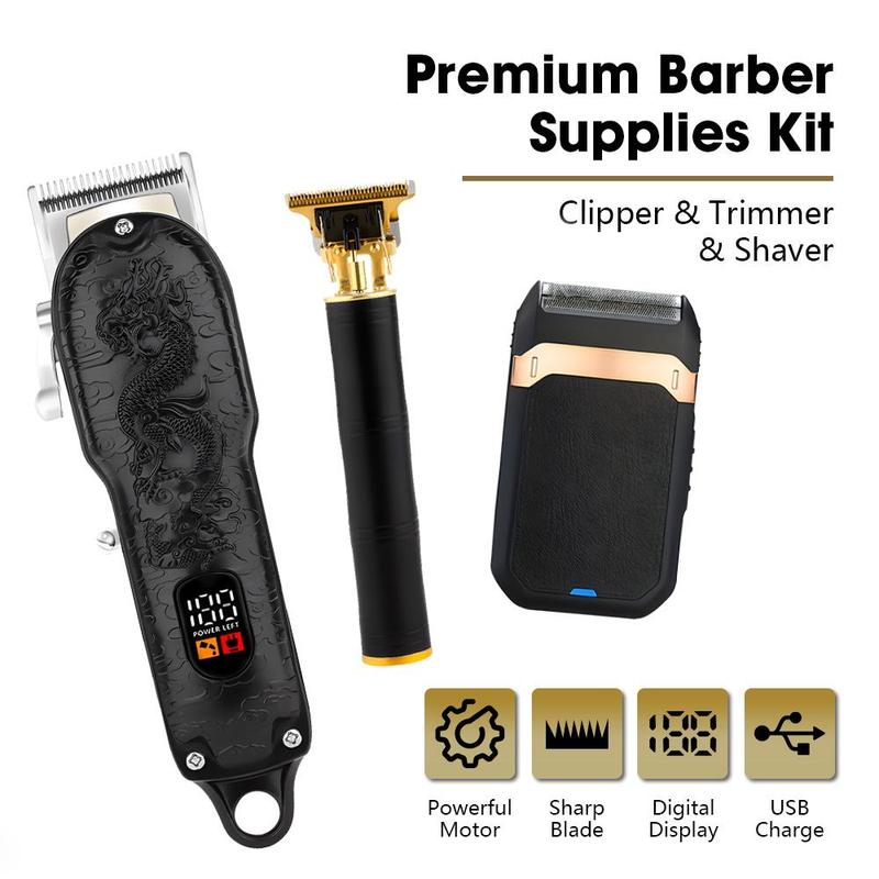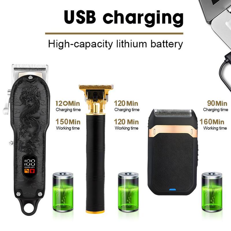 Professional Barber Clipper Set, Cordless Hair Trimmer for Men, Rechargeable ...