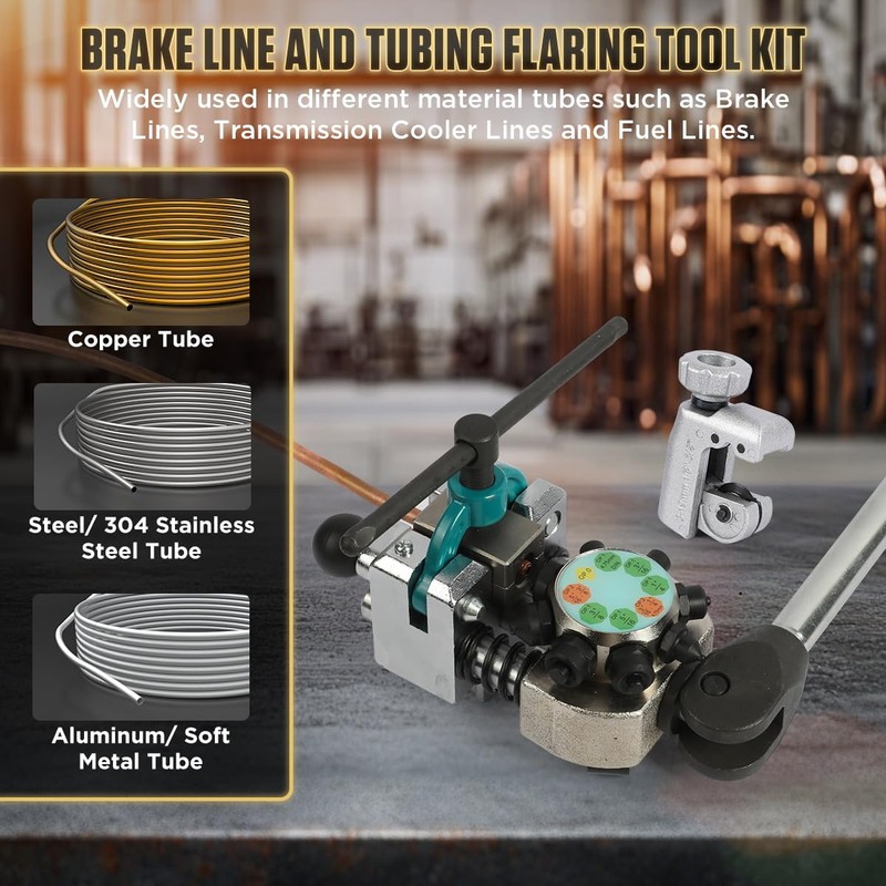Professional Brake Line Flaring Tool Kit 45 Degree Flare, Single Flare, Bubble Flare, Double Flare for 3/16", 1/4", 5/16", 3/8", Brake Repair Brake Flaring Tools Brake Line and Tubing Flaring Tool