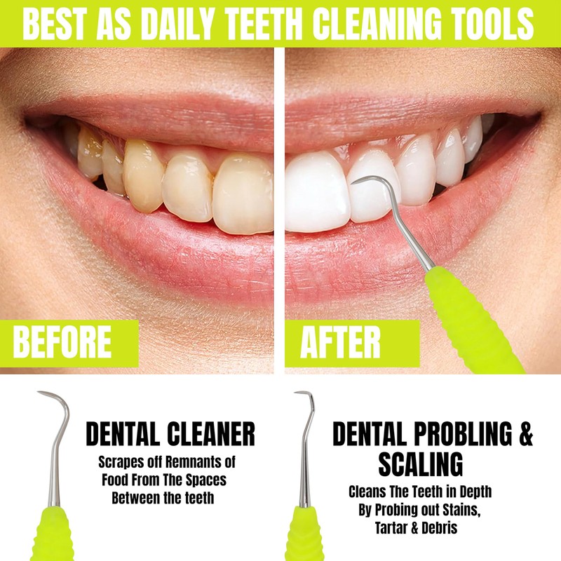 - Easy to Use - Our dental pick with the wide reach easily cleans the hard to see areas of your mouth. Also, plaque remover for teeth can help you clean the spots you miss in your daily brushing and flossing. Convenient to remove tough oral stains, food debris and tartars between your teeth and gums.