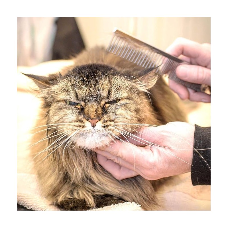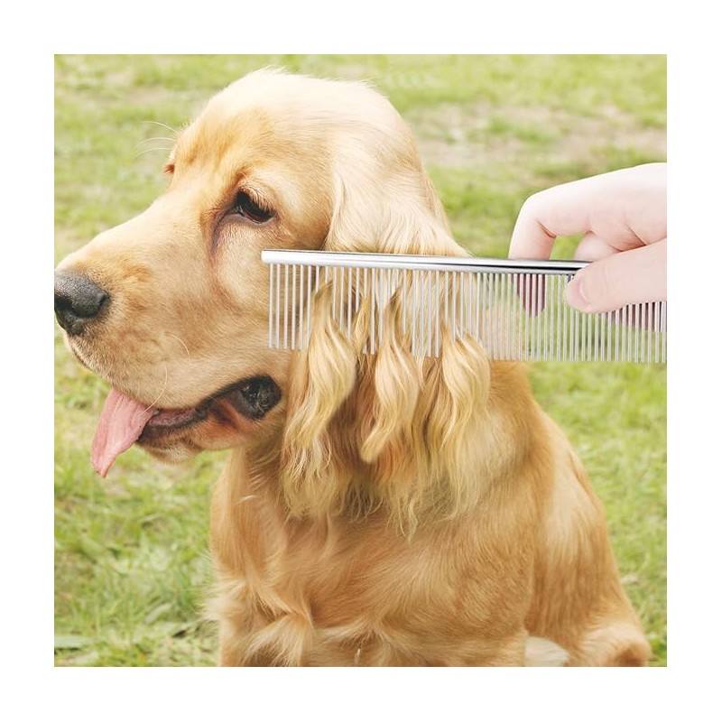 - DUAL-SPACED DESIGN: Professional grooming comb featuring two sections of rounded stainless steel teeth - wider spacing for initial detangling and finer spacing for thorough grooming