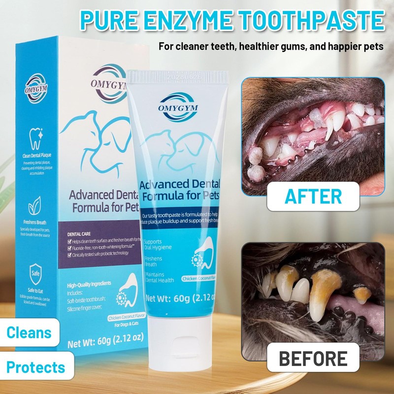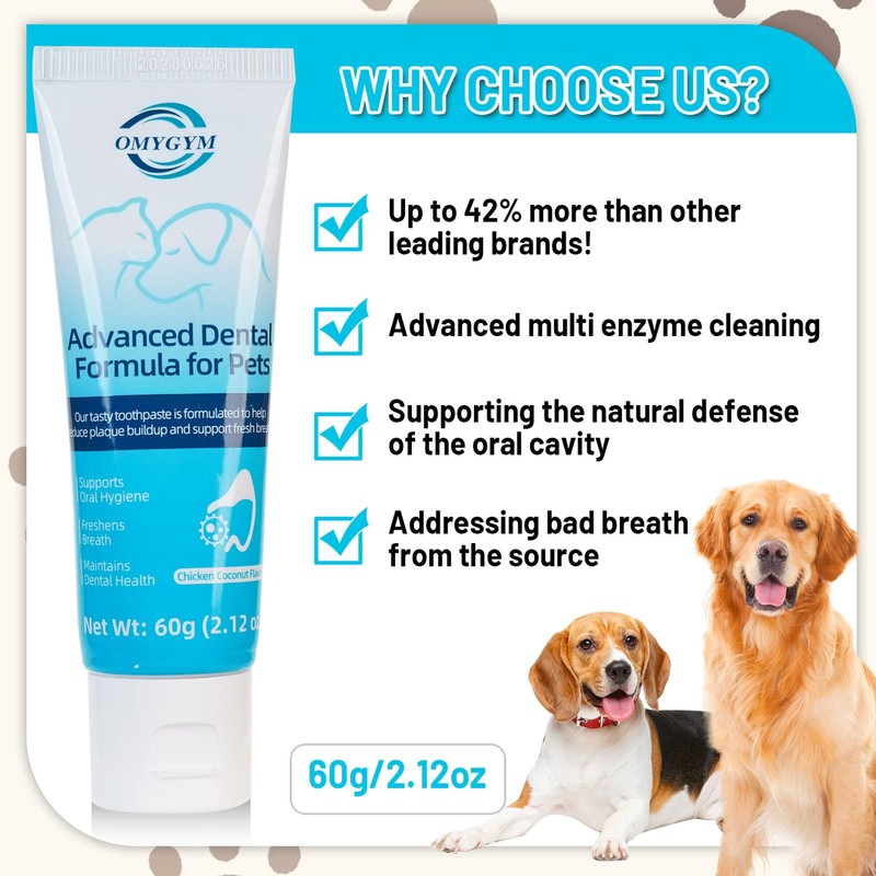 • Complete Oral Care for Dogs & Cats – OMYGYM dog toothpaste sets works with any dog toothbrush or dog tooth brushing kit to fight plaque & bad breath. Essential dog dental care in your dog supplies, ideal for both puppies & adults.