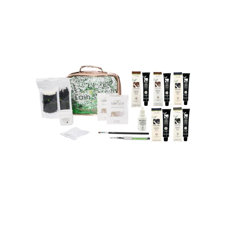 - Kit Contains: 1 Kalentin Hybrid Tint - Brown 30ml, 1 Kalentin Hybrid Tint - Black 30ml, 1 Kalentin Hybrid Tint - Blue Black 30ml, 1 Kalentin Hybrid Tint - Dark Brown 30ml, 1 Kalentin Cream Tint Developer 3% 30ml, 30 Eyelash Shields, 50 Disposable Mascara Wands, 1 Eyelash & Eyebrow Tint Brush, 1 Glamour Tint Brush, 1 Acrylic Mixing Dish, 1 Petroleum 50g, Lash Cleansing Pads, 50 Flocked Applicators, 1 Eyelash Tint Eye Guard, 1 Lash Stuff Bag