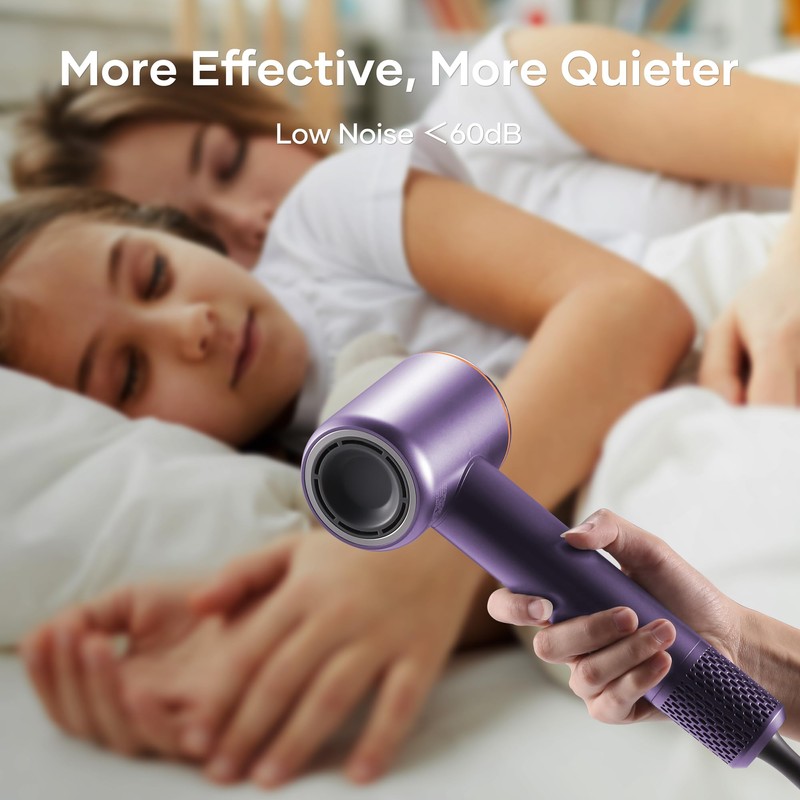 Professional Hair Dryer, 200 Million Negative Ionic Blow Dryer with 110000 RPM Brushless Motor, 1500W High-Speed HairDryer with Magnetic Nozzle & Diffuser for Salon, Home, Travel (Elegant Purple)