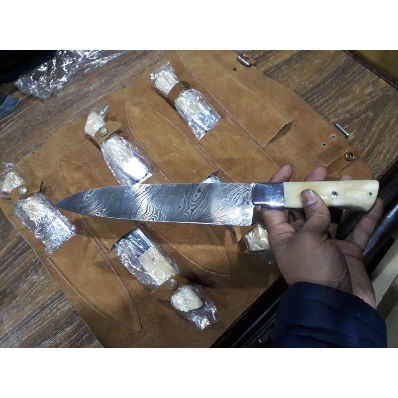 Professional Kitchen Knives Custom Made Damascus Steel 5 pcs of Professional Utility Japanese Chef Kitchen Knife Set with Pocket Case Chef Knife Roll Bag by Wilson Roy/KG21